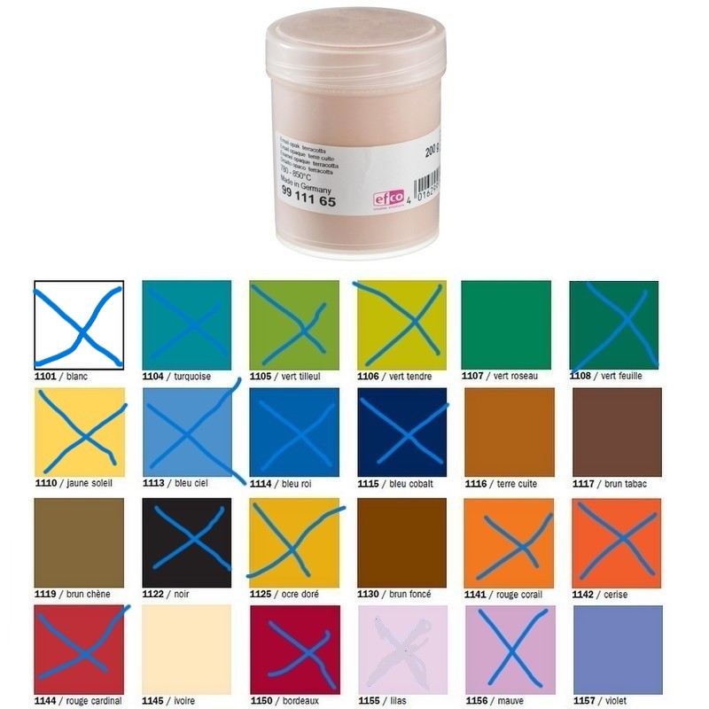 Température de cuisson 780 – 850° C, sur cuivre, argent, or et fer.